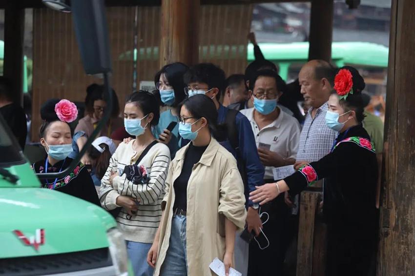 “十一黄金周”期间,为了给游客提供一个安全有序、健康平安的游览环境,西江千户苗寨景区通过全面的防疫准备,在严防严控的基础上,提供安全保障,以保证防控不松懈,游客更舒心。