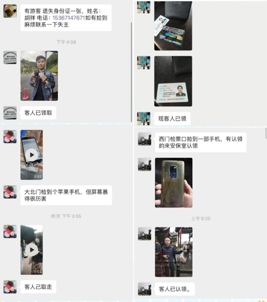 国庆假期游客量多,很多游客把自己的背包、钱包、手机等物品遗落在景区,景区工作人员在拾到游客物品后都会立即联系失主,高效地为游客解决问题,尽最大努力保障游客安全,他们以实际行动赢得了游客的信任和赞誉。