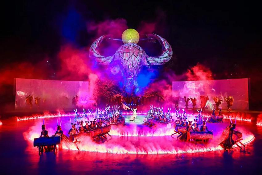《西江盛典》以弘扬苗族文化为己任,透过苗族文化元素,全景再现了苗族儿女在祖先蚩尤带领下的发展史、迁徙史以及苗族人民智慧文明的伟大结晶,呈现出了一部气势磅礴的苗族文化盛宴,展现了苗族人民用智慧勇敢,守护家园的精神风貌。