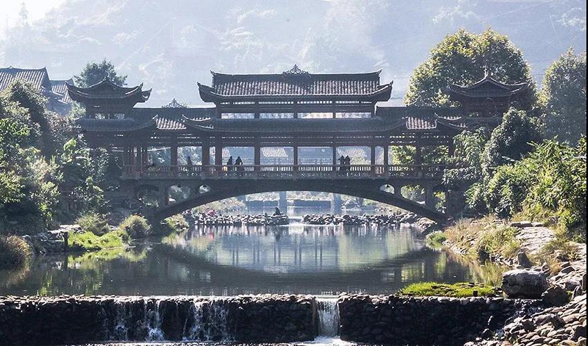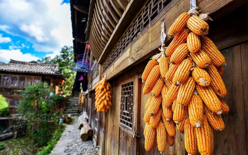 郎德是一处比较安逸的苗寨,2008年奥运圣火走过的地方,保留了很多原生态气息,四面群山环抱,茂林修竹,衬托着古香古色的吊脚楼,蜿蜒的鹅卵石路在屋檐间时隐时现,房屋上还挂有玉米串,很有古香古色的味道。寨中道路、院坝及各户门庭,都用鹅卵石或青石镶砌铺就。