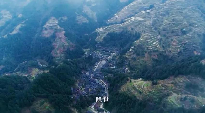 四面环山,重峦叠嶂,吊脚木楼依山而建,层层叠叠、连绵成片。
