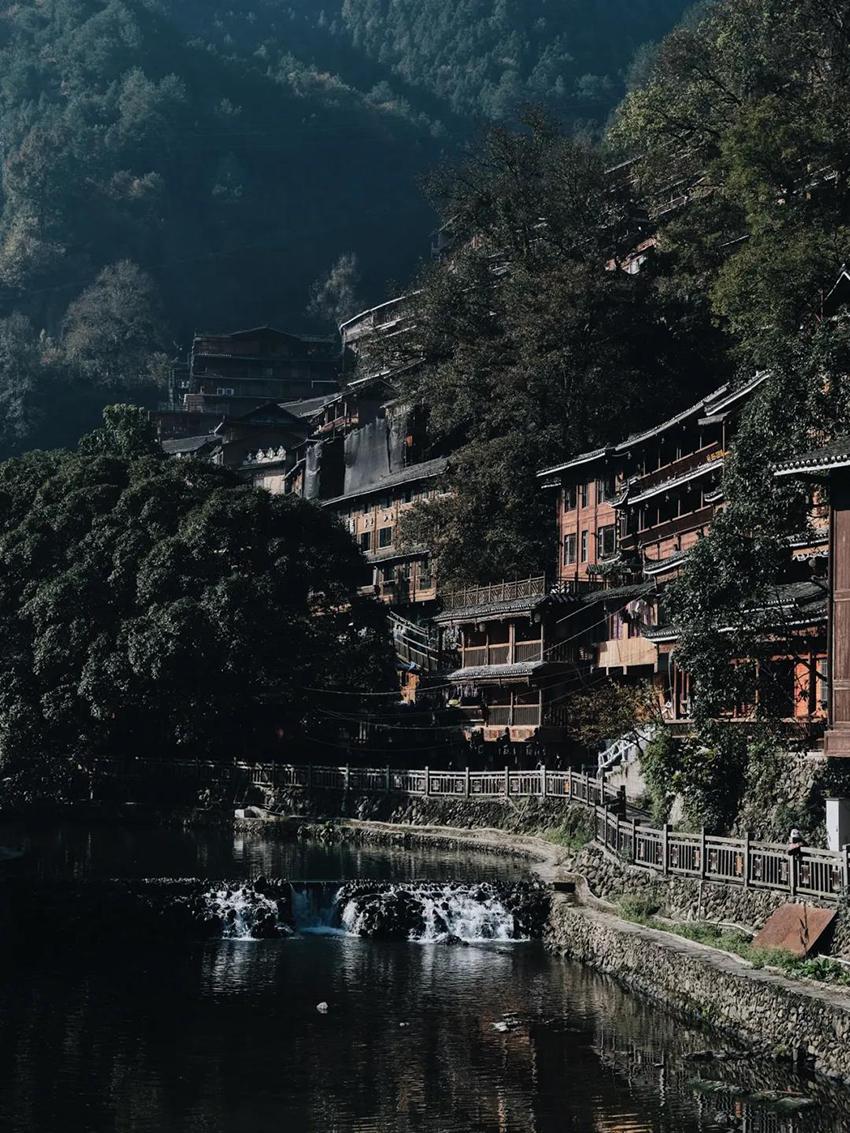 小确幸藏在西江千户苗寨的河畔,风雨桥下,它滋养着西江千户苗寨,在青山的倒映下河畔的水显得更加碧绿。缓缓从河畔旁走过,如沐清风,恍然,空气中已经是冬天的味道了!