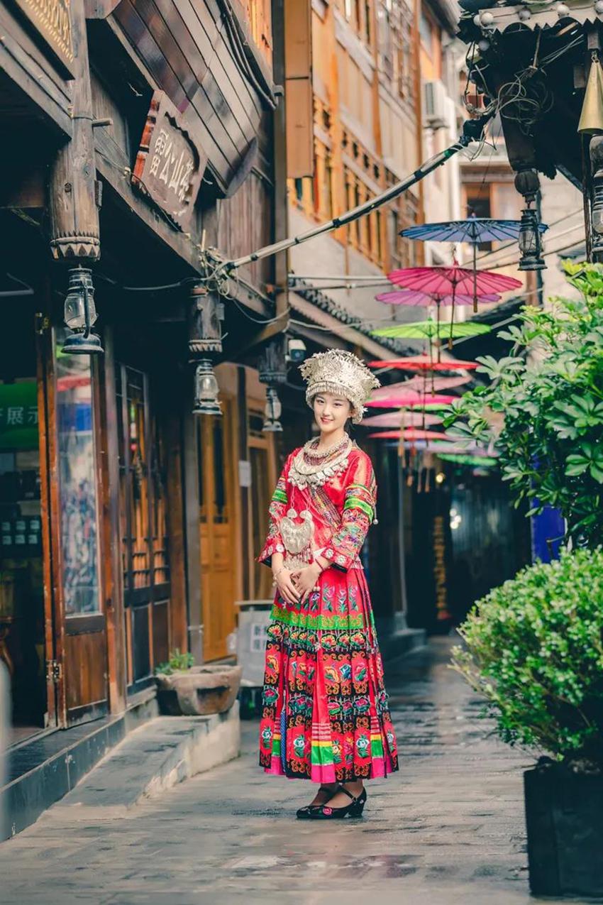 进入到了冬季,在西江千户苗寨,租一套苗族盛装,去往各个景点打卡,才算不枉此行。苗服无论是刺绣还是针脚,都展现出高超的技艺,爱美的你不能错过的拍照机会,在景区内有很多的店面,提供拍照或衣服租赁服务。