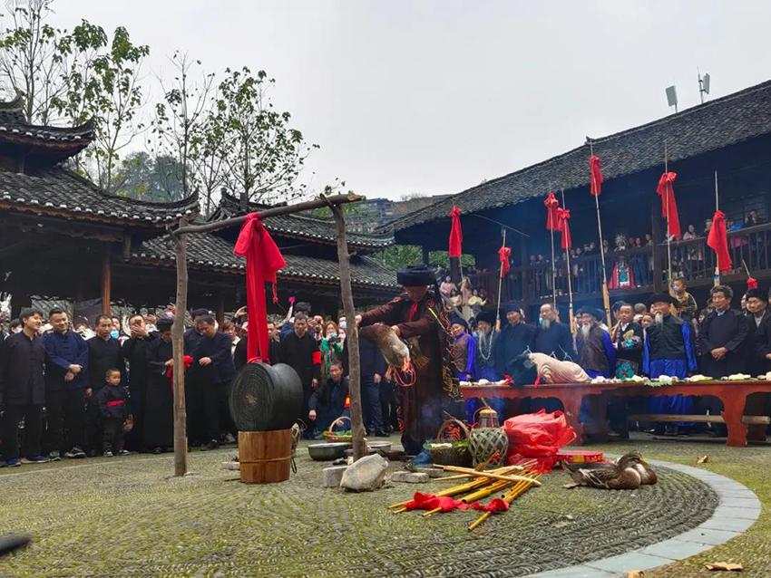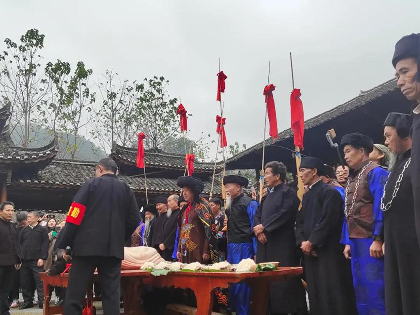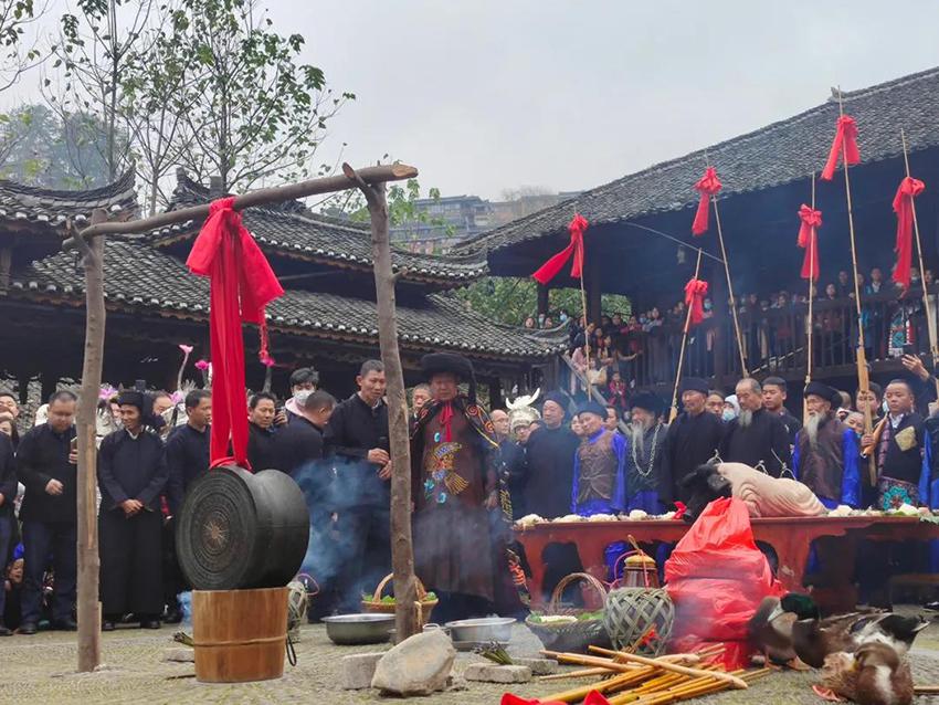 这块生长庄稼的土地,也生长着信仰。敬万物,重祭祀,多节日,还沉淀出热爱生活,敦厚质朴、坚强不屈的民族基本特质。每到过苗年节,就要先由鼓藏头及其家族的人在起鼓场起鼓,也就是敲响木鼓或铜鼓,唤醒祖先的灵魂,告诉祖先又过了一年,请祖先来和大家一起共祝新年,也希望祖先保佑西江苗寨来年风调雨顺,国泰平安。