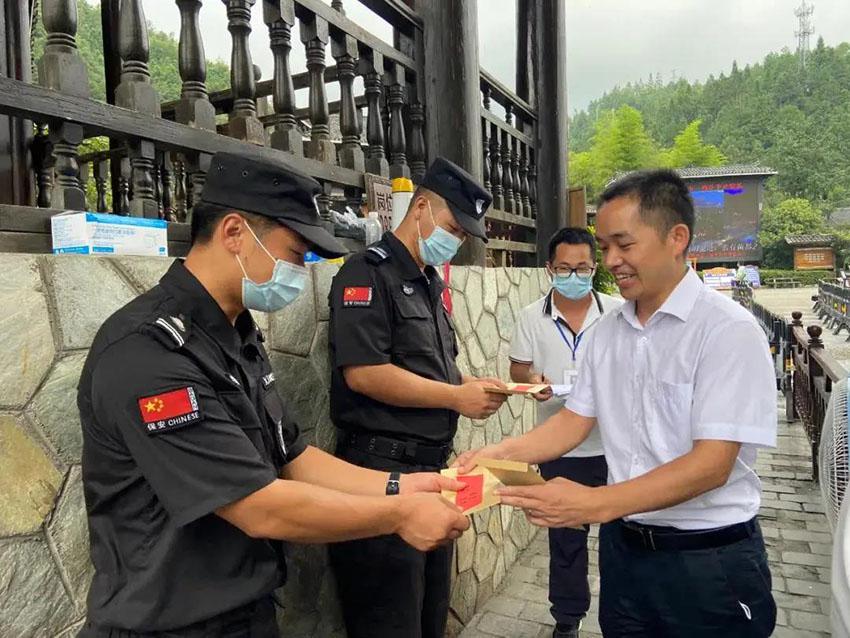 二、结合景区实际制定疫情防控处置预案,配备7台5G热成像体温监测仪,2台自动消毒机,并执行好卡点制度和“两码一测”制度,常态化开展疫情防控工作,全力排查所有进入景区的车辆和人员,确保景区无疫情发生。