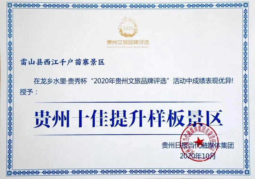 西江千户苗寨景区荣获贵州十佳提升样板景区