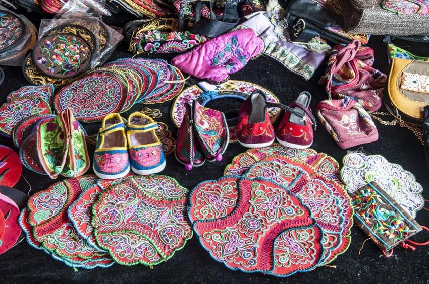 苗族刺绣都是无图作业,艺从心生,种类多,工艺精湛,而且想象丰富,造型奇特,色彩艳丽。其绣法复杂多样,有平绣、挑花、锁绣、堆花、贴布、打籽绣、破线绣、钉线绣、辫绣、锡绣等多种绣法。在2006年公布的首批国家级非物质文化遗产名录中,苗绣名列其中。