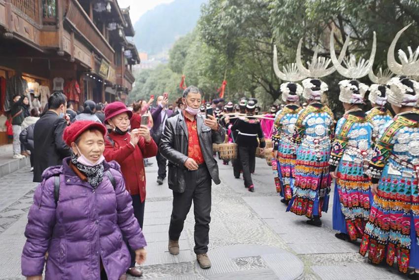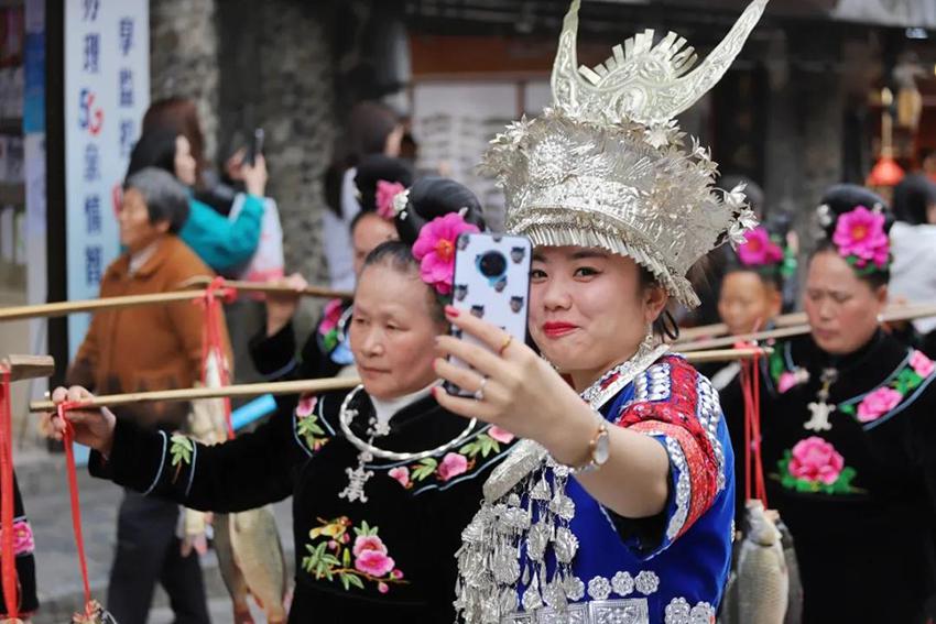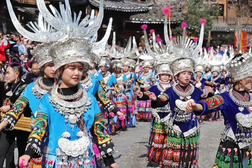西江千户苗寨着力打造的年味十足又饱含苗族特色的民俗文化活动大受欢迎,景区在常规的30余项文化活动的基础上,还增加了:“福牛迎春·西江有礼”、“体验打糍粑”、“手工苗族技艺展示”、“国家级《非遗文化大巡游》”等富有苗族文化特色、接地气的新春活动。