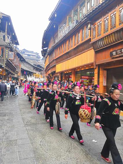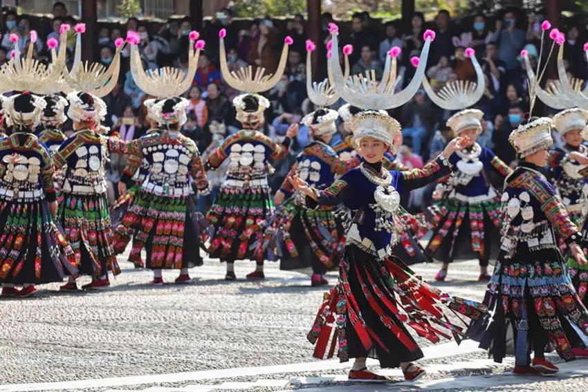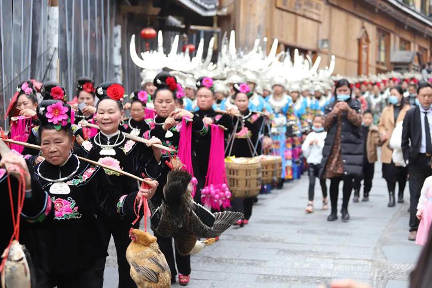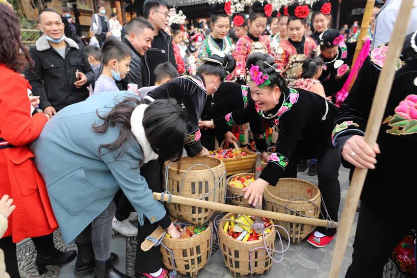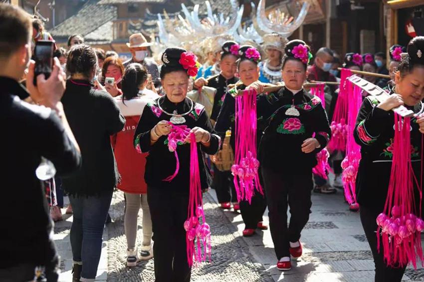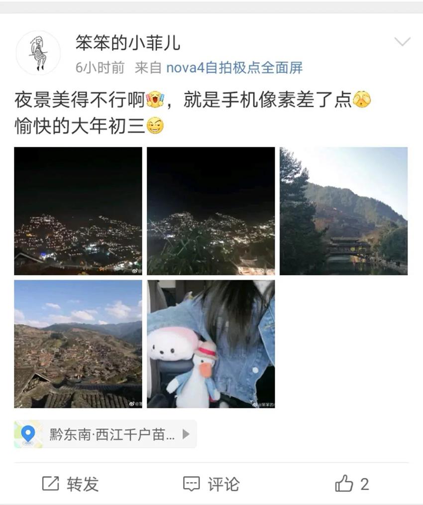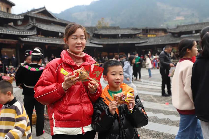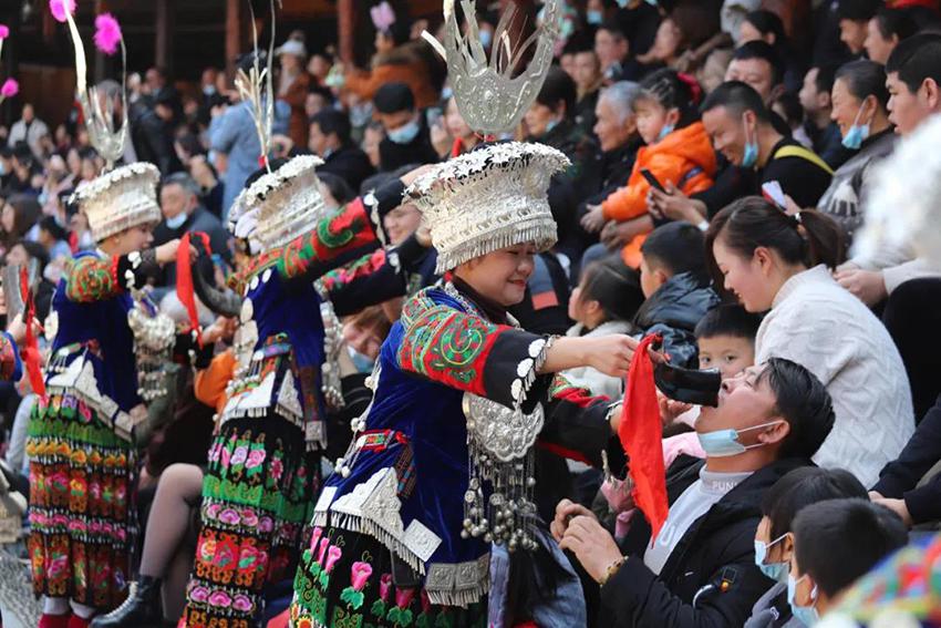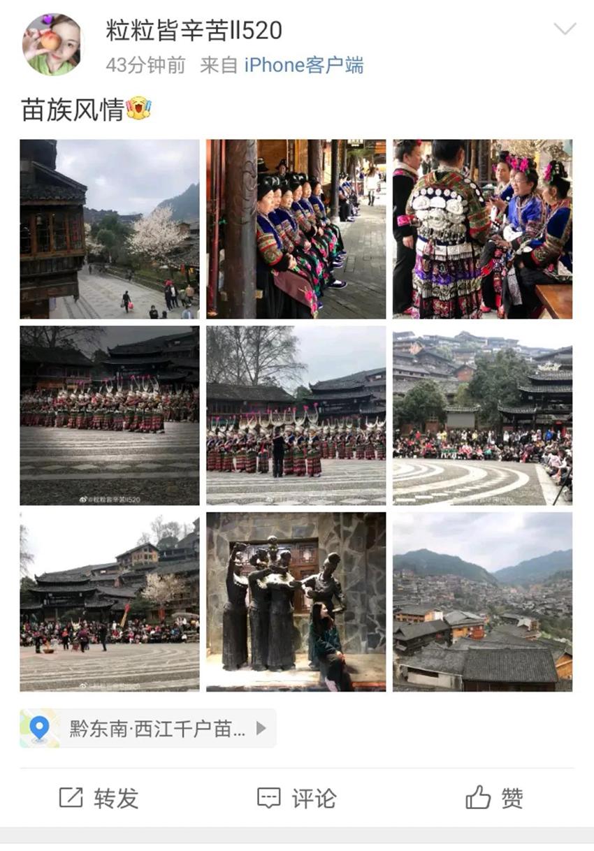 春节,天公作美,暖阳融融、阳光明媚,西江千户苗寨充满着春天的气息。苗寨春节活动精彩丰富,景区游客盈门,来自四面八方,喜聚苗寨,在阳光下尽情享受春节长假的欢乐。