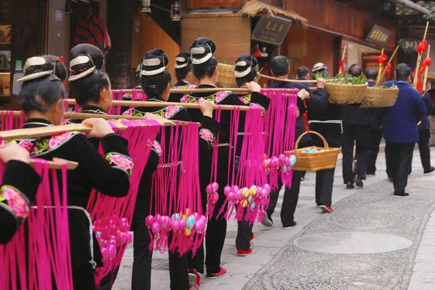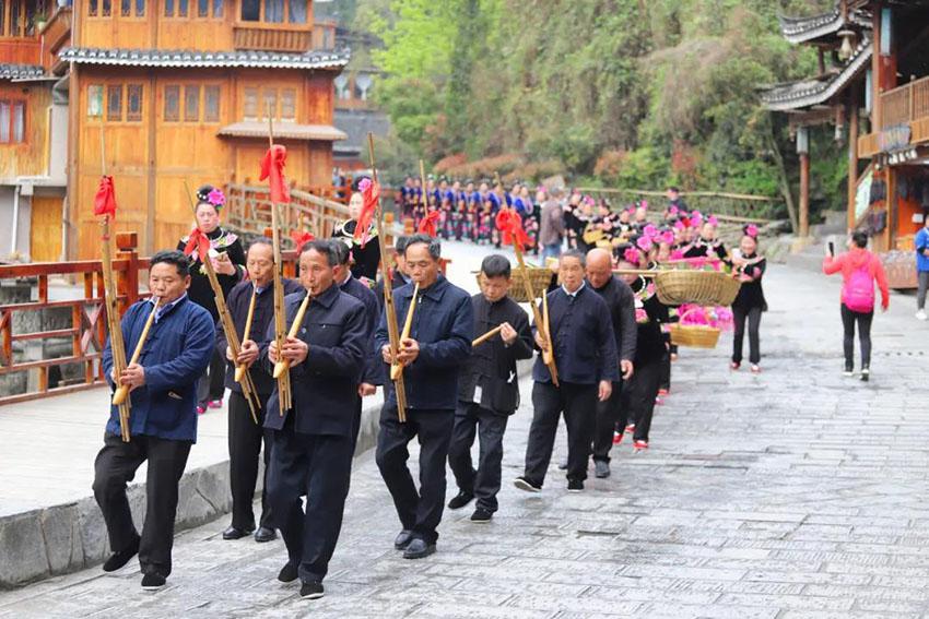 二月二是苗族盛大的节日之一,在西江千户苗寨节庆活动非常丰富。