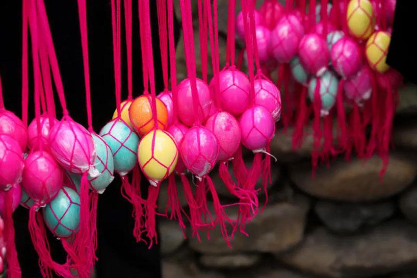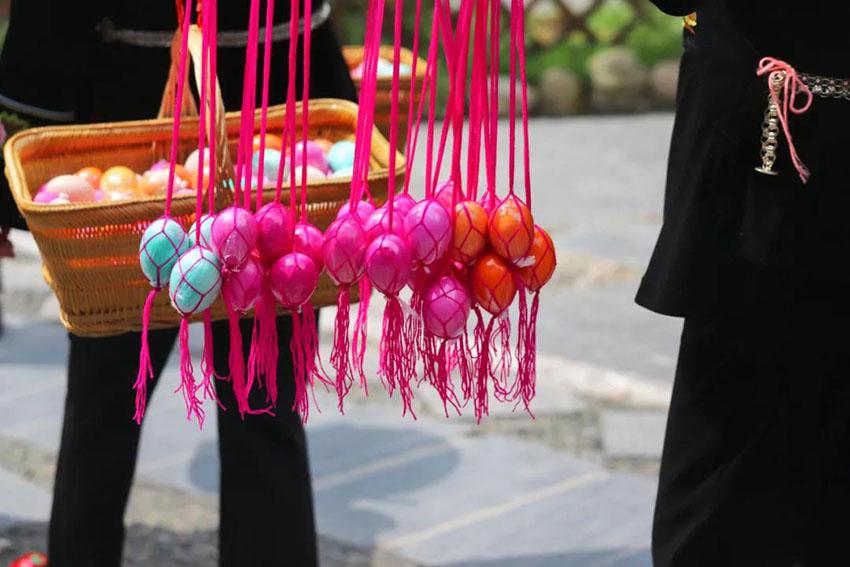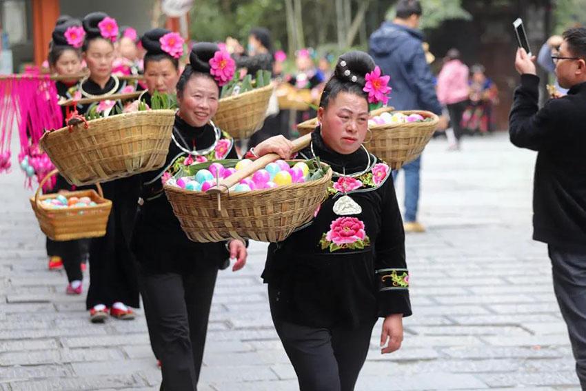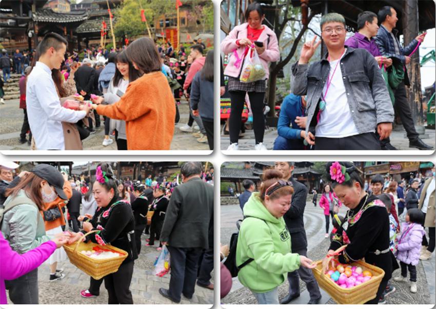 期间苗族村民身着节日盛装,踩芦笙、挂彩蛋、踩鼓对歌,吃长桌宴,村村寨寨欢歌笑语,笙鼓悠悠,场面热闹非凡。面对游客热表款待,并以彩蛋和糯米饭相送。