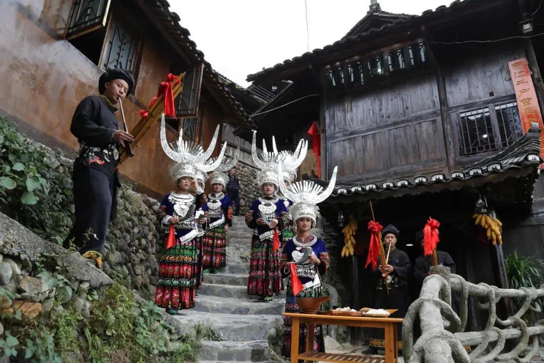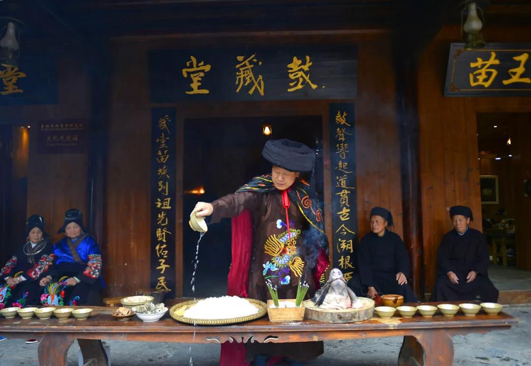 “十二道拦门酒”是雷公山苗族迎宾待客的最高礼仪,十二道香甜的苗家米酒带着十二种祝福,每道都有着它丰富的文化寓意。