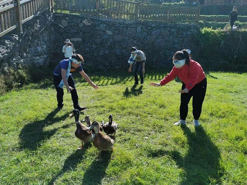活动规则:以组队方式或者家庭为单位,一组分别3-5人,由一人现场指挥其余队员蒙上眼睛抓鸭,在规定的时间内抓到鸭子数量最多的队伍,可以获得精美礼品一份。
