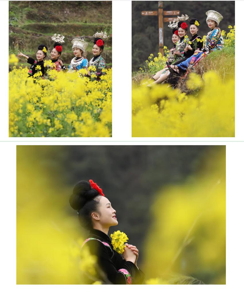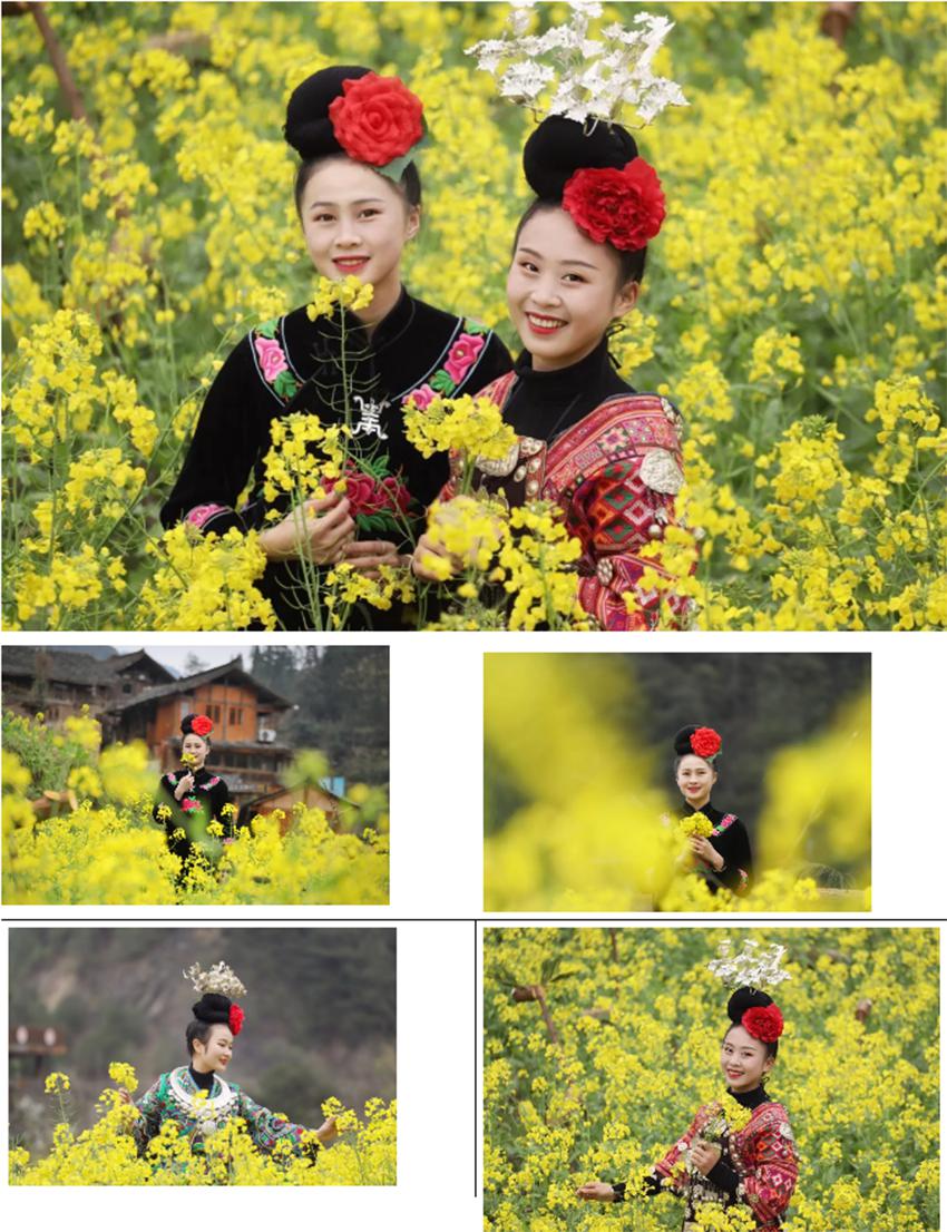 活动内容:给游客穿上苗族盛装,然后以组为单位,由摄影师带领分别到:‘阅读西江’图书馆(最文艺范摄影点);最美田园观光区(油菜花海摄影点);白水河畔(最美桃花、李花摄影点)。