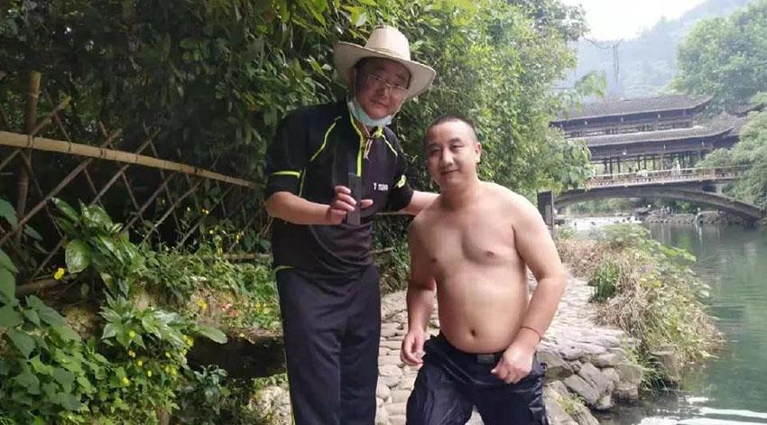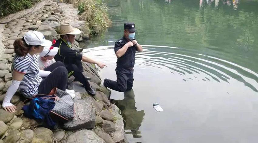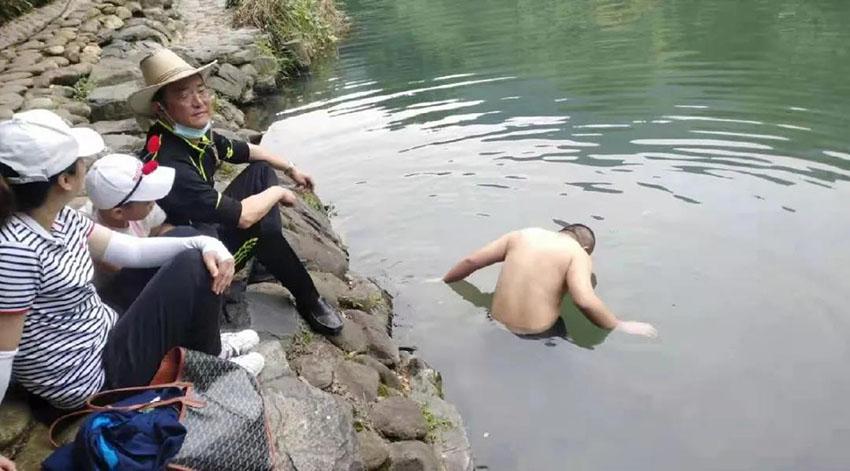 青春就是服务群众 游客何先生不慎将手机掉入河内,景区工作人员李锦华及时为何先生下河捡回,得到游客何先生及他的家人一致好评!