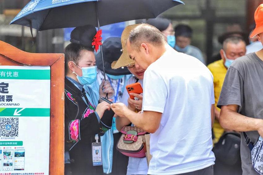 青春就是热爱 景区检票处,有一群年轻的票务工作人员他们热爱自己的工作,把每一名游客当作自己的家人,微笑引导游客快速通过检票口。