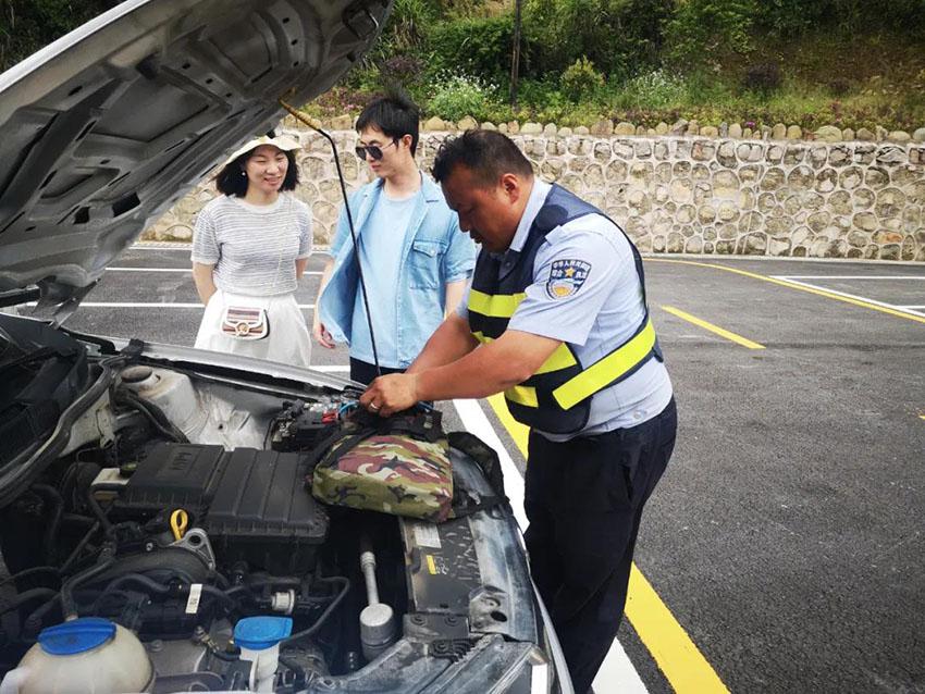 服务公司停车场杨昌智同志摇身变“维修师傅”,积极为游客维修车子故障,游客对景区及工作人员的服务表示感谢。