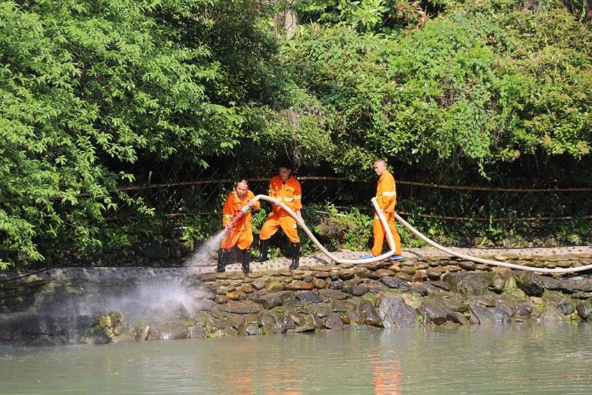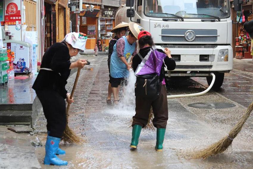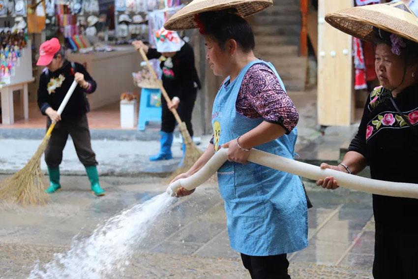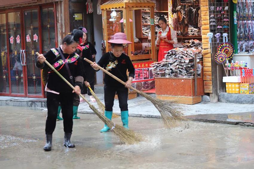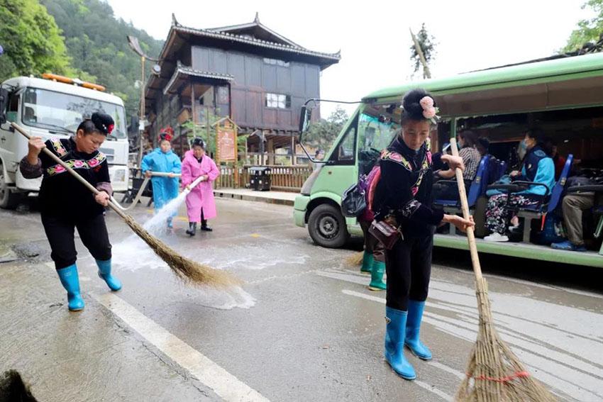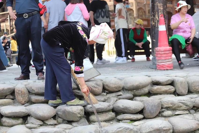 2021年4月是全国第33个爱国卫生月。为深入开展爱国卫生运动,打造健康环境,全面提升自我防病意识和健康素养水平,推动形成文明健康、绿色环保生活方式,筑牢常态化疫情防控的社会大防线。4月22日,西江千户苗寨景区开展爱国卫生月活动,整治公共厕所、景区河道,清理卫生死角、积存垃圾、垃圾广告等。