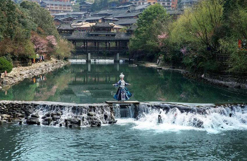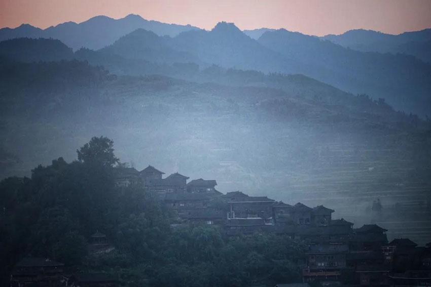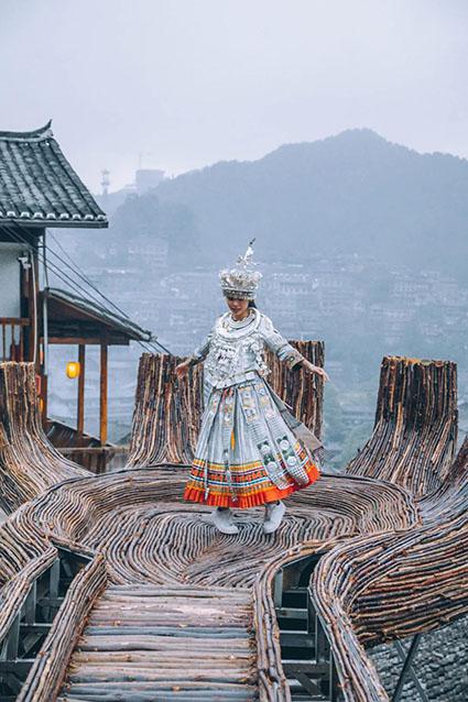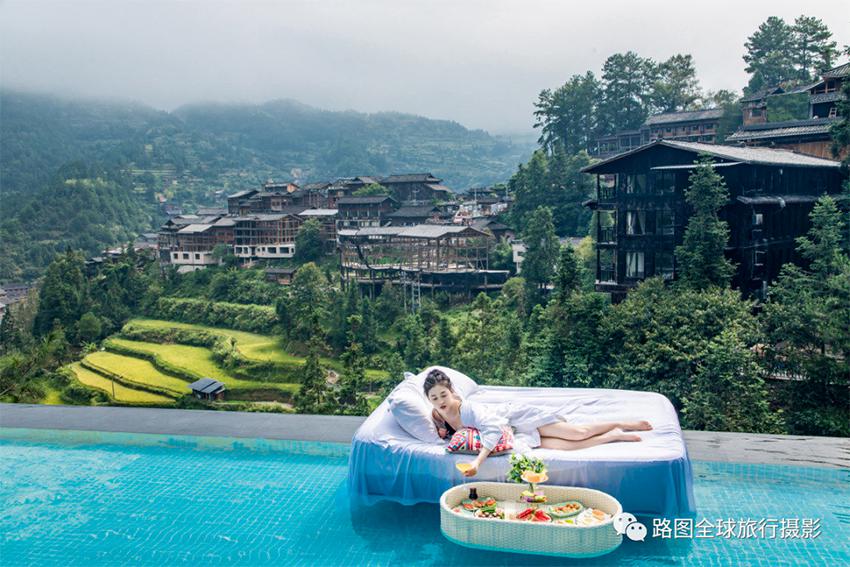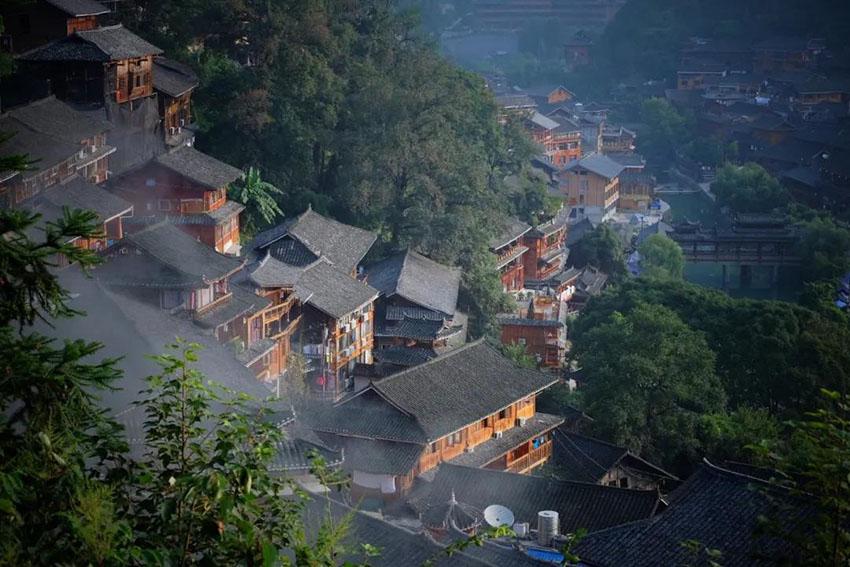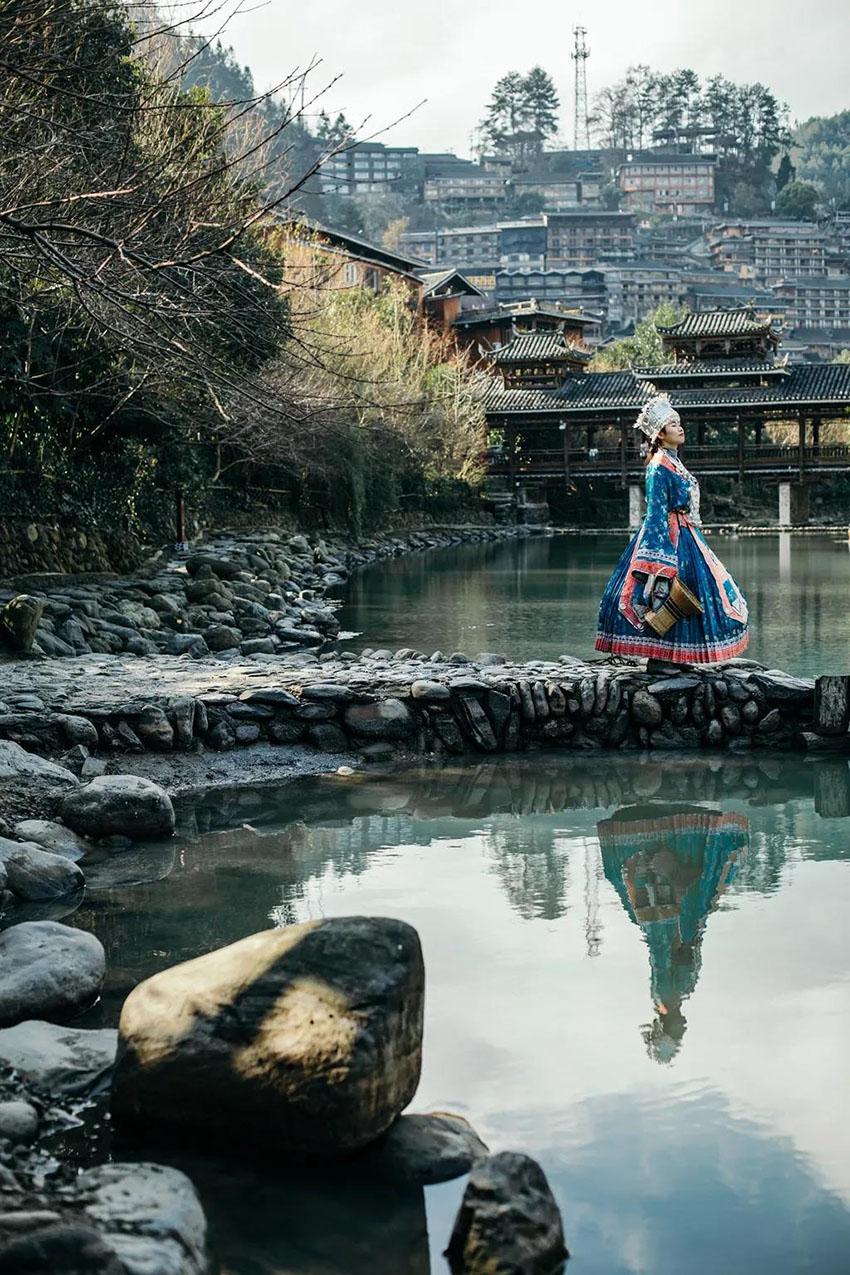 四面环山,从峦叠嶂,梯田依山顺势直连云天,白水河穿寨而过,将西江苗寨一分为二。寨内吊脚楼层层叠叠,顺山而建,又连绵成片,气势恢宏。苗族农耕、节日、银饰、歌舞及其遗风古俗在这里世代相传,“用美丽回答一切,看西江知天下苗寨”,余秋雨先生在这青山环抱的空间里,找到了人世间最精彩的汇集。