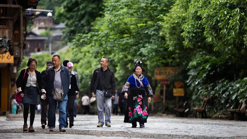 西江千户苗寨景区位于贵州省黔东南苗族侗族自治州雷山县东北部的雷公山北麓,现居住6000多名苗族同胞,共1432户,苗族人口占总人数99.5%,所以被誉为“千户苗寨”。