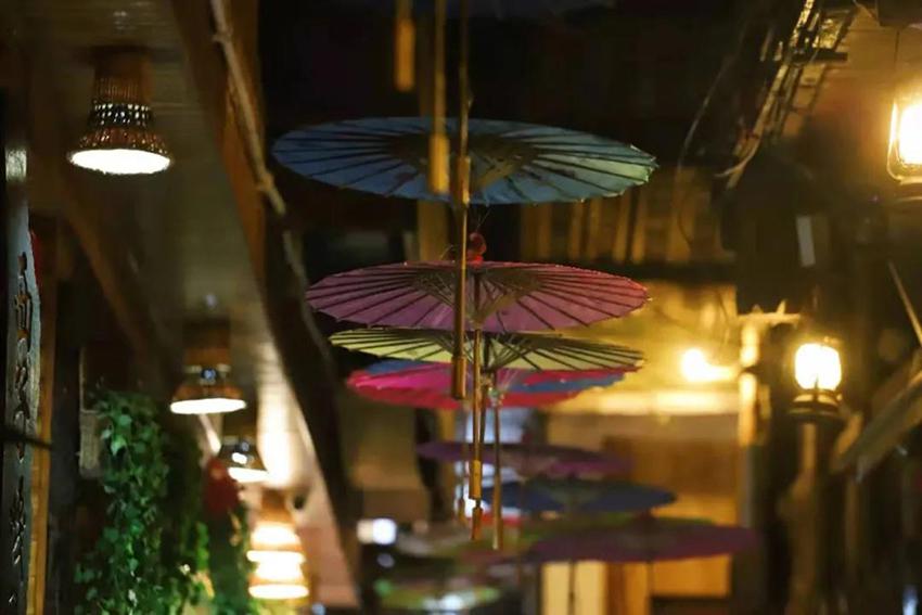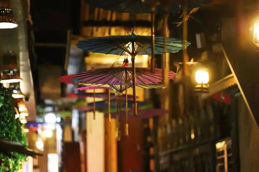 嘎歌古巷,晚风掠过,油纸伞随风飘动,有点江南情调,好比“欲把西湖比西子,淡妆浓抹总相宜”。