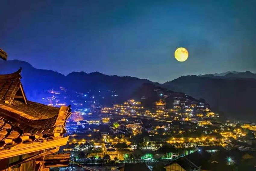 天气放晴的夜晚,皎洁的月光照耀,给苗寨增添了些许祥和与宁静,可穿上苗族服饰,漫步于苗寨的大街小巷。