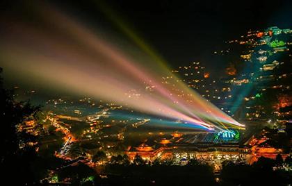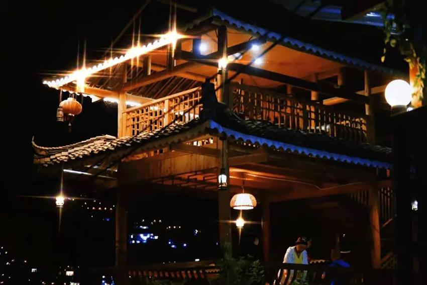 来到观景台上,俯瞰整个西江苗寨,层层叠叠的吊脚楼灯火璀璨,美不胜收。