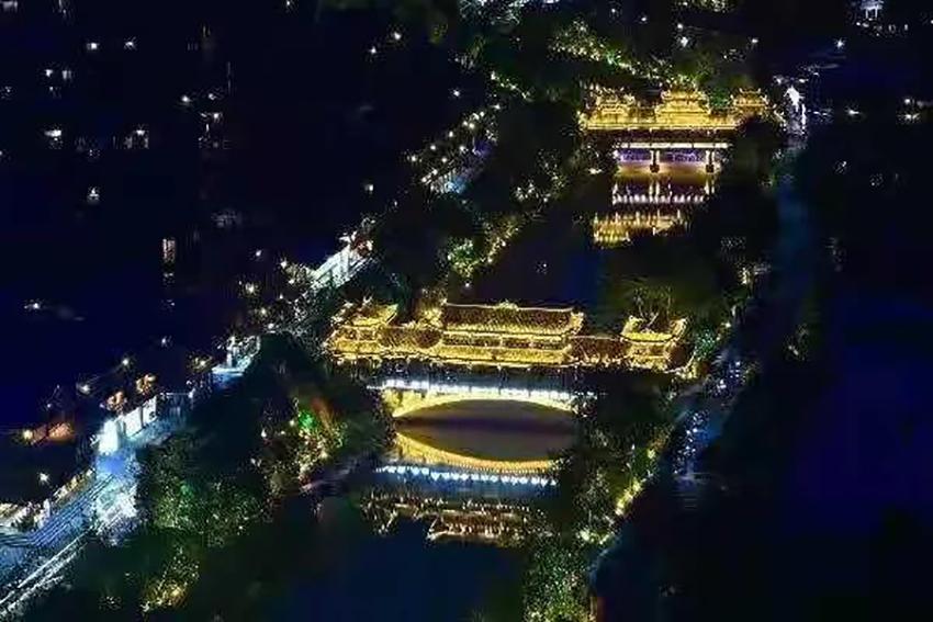 白水河边,在灯光的照映下,桥、水共成一色,尤为壮观。要是缘分来临时,在风雨桥上来一场邂逅,那岂不是更加美满。