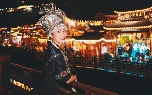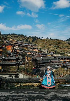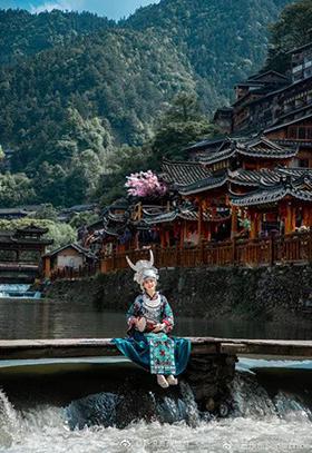 换上苗族服饰,穿梭在层层叠叠,顺山而建的特色民族建筑吊脚楼中,用相机记录这令人震撼的民族文化,体验一次苗族少女。