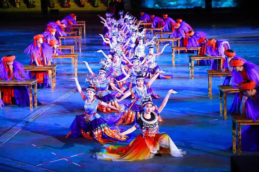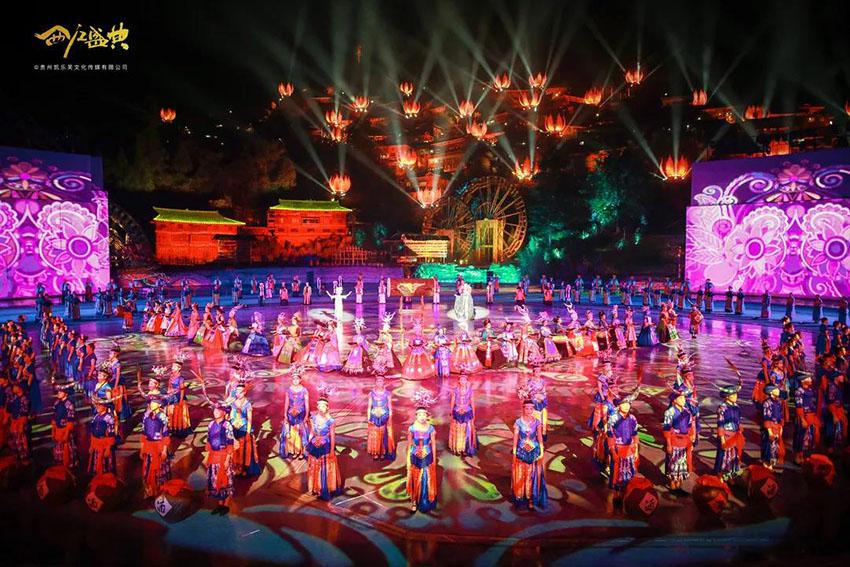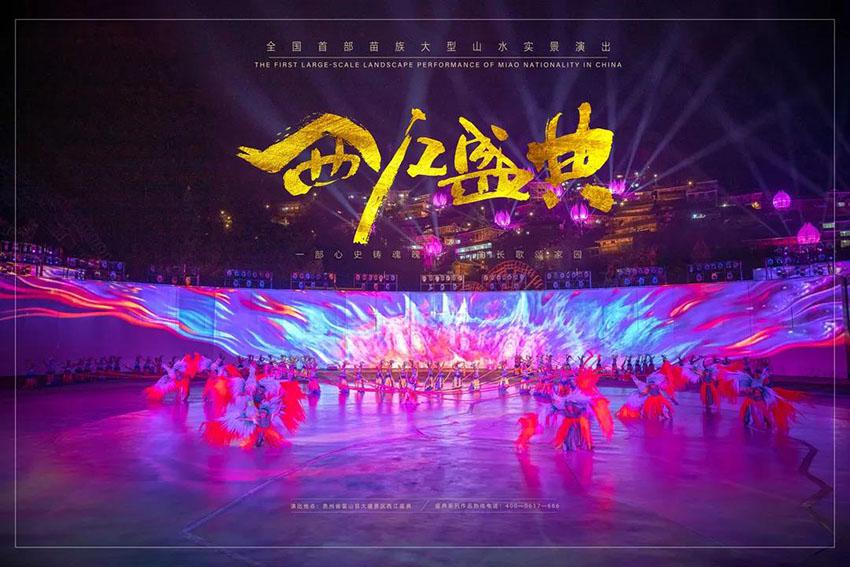 《西江盛典》一场穿梭千年苗族历史的实景表演!全景再现苗族儿女在祖先蚩尤带领下的迁徙史、发展史以及苗族人民智慧文明的伟大结晶。