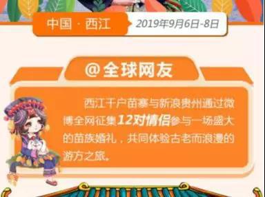 届时,将通过微博全网征集12对情侣参与西江浪漫游方之旅,倾诉爱意,谈情说爱!网友可在8月23日-9月1日之间微博私信@新浪贵州旅游 发送一张情侣照及姓名、联系方式参与报名,工作人员从报名的网友中选出12对情侣一同参与游方之旅。动人的爱情故事、有趣的婚俗体验、万人共度的热闹场面……“浪漫游方情醉西江”西江千户苗寨第八届游方之旅等你来寻爱!