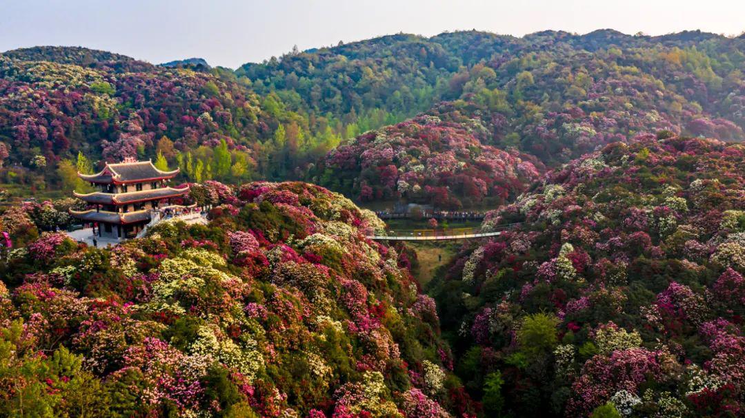 为了青山常在,百里杜鹃持之以恒保护当地生态。作为重要的生态安全屏障,九龙山生态在上世纪八十年代曾一度遭到破坏,毁林垦荒、盗伐乱砍现象较为严重,百里杜鹃动真格、出硬招、成立百里杜鹃管理区生态环境委员会,规范各级各部门生态环境工作职责,明确了百里杜鹃管理区生态环境委员工作规程和各成员单位工作职责,确保我区生态环境保护工作推进方向不变、力度不减。“2008年,我们林场由原本的大海坝国有林场九龙山工区改为九龙山国有林场,划归百里杜鹃管理区管辖。林场的成立让这里的生态建设得到进一步加强。在这十多年的努力下,我们的森林覆盖率从60%多上升到现在的94.5%,现在林场面积有1.4万余亩。”九龙山林场负责人李泽刚如是说。