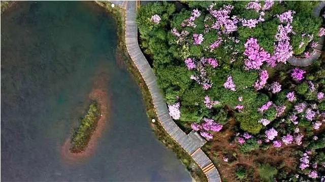 为了自然可得,百里杜鹃坚持人与自然和谐共生,编制全域空间统筹规划,科学布点建设花都城区,将公园形态与城市空间有机融合,持续优化生产、生活、生态布局,拿出“黄金地块”建设鹏程公园,以生态文化为主题,用地253514平方米建立杜鹃花湖、杜鹃芳香径、民族风情馆等五区十景、三线、五中心的特色旅游路线,建成了成为山、水、林、草、景相融的城市公园,吸引了众多四川、重庆的游客到此避暑旅居,“一座花都城、半城川渝人”的格局逐步扩大,满足居民亲水、休闲、健身、旅游等需求,成为山、水、林、草、景相融的郊野公园,增添了居民游玩新去处,居民抬头见绿、移步换景,宜居舒适度、生活幸福感持续提升。引来白鹭、牛背鹭等候鸟栖息,一个缺水城市蝶变成为水清岸绿环境美的山水生态之城。