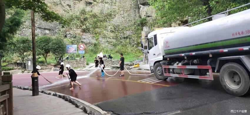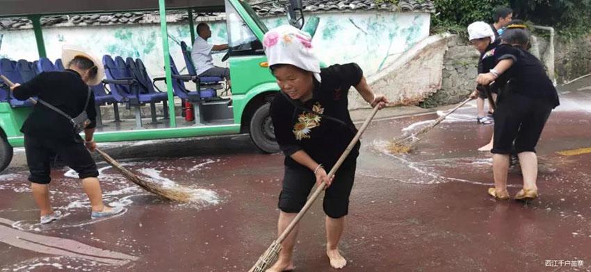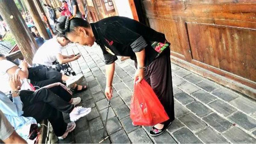 严格按照“责任分区、轮班巡查、相互协作、及扫及清”的工作要求,把观景台、古街、游方街、景区卫生间等区域作为重点把控区域,做到时时清扫,确保了整个景区垃圾无残留,卫生无死角。