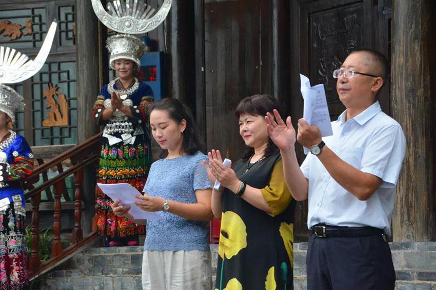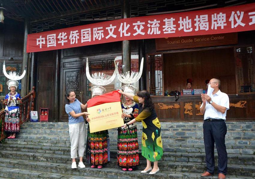 2019年9月9日,西江千户苗寨“中国华侨国际文化交流基地”揭牌仪式顺利举行。黔东南州侨联党组成员、副主席邱红瑛、雷山县委统战部副部长唐秋玉、西江旅游公司副总经理杨春艳出席了本次揭牌仪式。