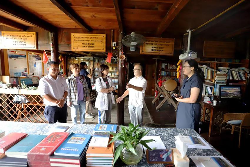 谈到文化传承与阅读空间的建设,贵州民族图书馆馆长杜侠认为,西江苗寨民族文化传承以一种创新的方式,打开了与世界对话的大门。向世界传播中华民族优秀传统文化,是每一个民族文化工作者的使命与责任。作为荟萃民族文化知识宝库的贵州省民族图书馆,近年来通过举办展览、开设读书角和文化讲座等形式,致力于把民族文化送进学校、社区、乡村。希望通过西江苗寨“图书角”的建成,游客在领略西江原汁原味文化的同时,也能从图书的阅读中得到滋养,体会到多彩贵州“美美与共”的风采。