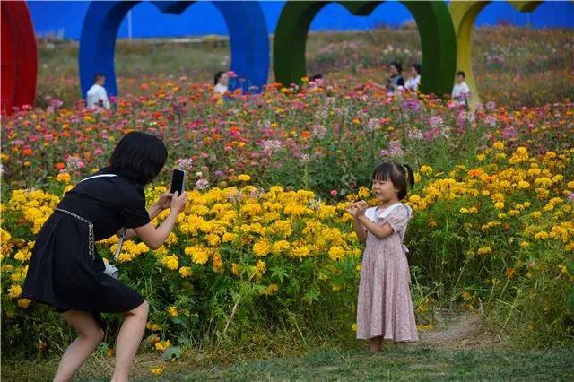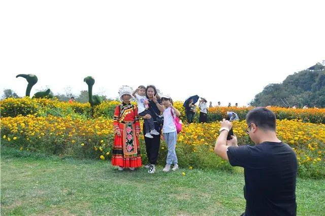 在彝山花谷景区,百日菊、孔雀草、醉蝶花争相盛开,花香四溢,五颜六色的花朵编织色彩斑斓的花海,草地里、花丛中不时传出阵阵欢声笑语,全家人乐享惬意亲子时光。