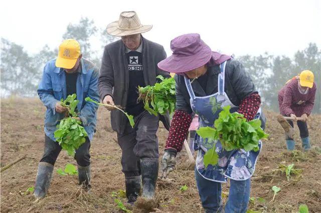 “今年我们党支部领办的合作社在秋冬种期间主要是在我们坪上组、石门组一带种植羊角菜1500亩,种植模式是利用老百姓闲散的土地,采收后把土地翻犁给老百姓。”黄泥乡坝子村党支部书记刘泽国介绍:“我们是每天有60余人到种植基地务工,采用务工工资日结的方式,按每人每天100元的工资发放,预计种植完后,需发放15万元的务工工资,能为当地村民带来不少收入。”